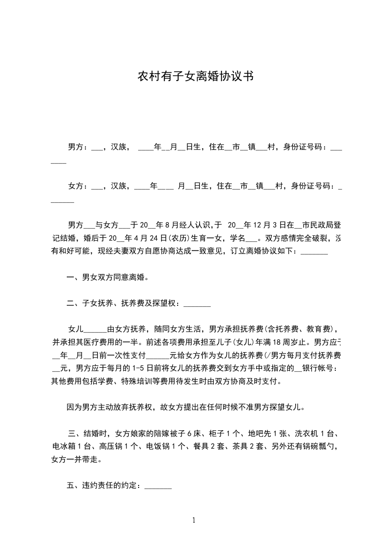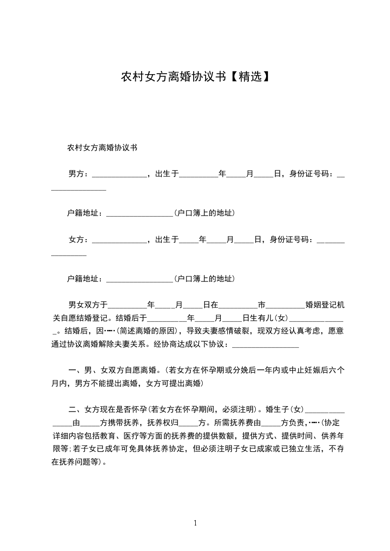 女方:______,汉族,______岁,____省____县____乡____村人,住____________。