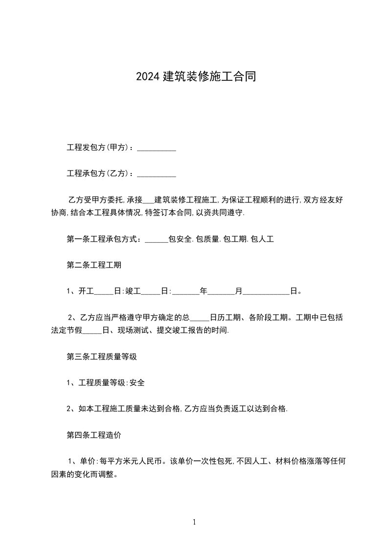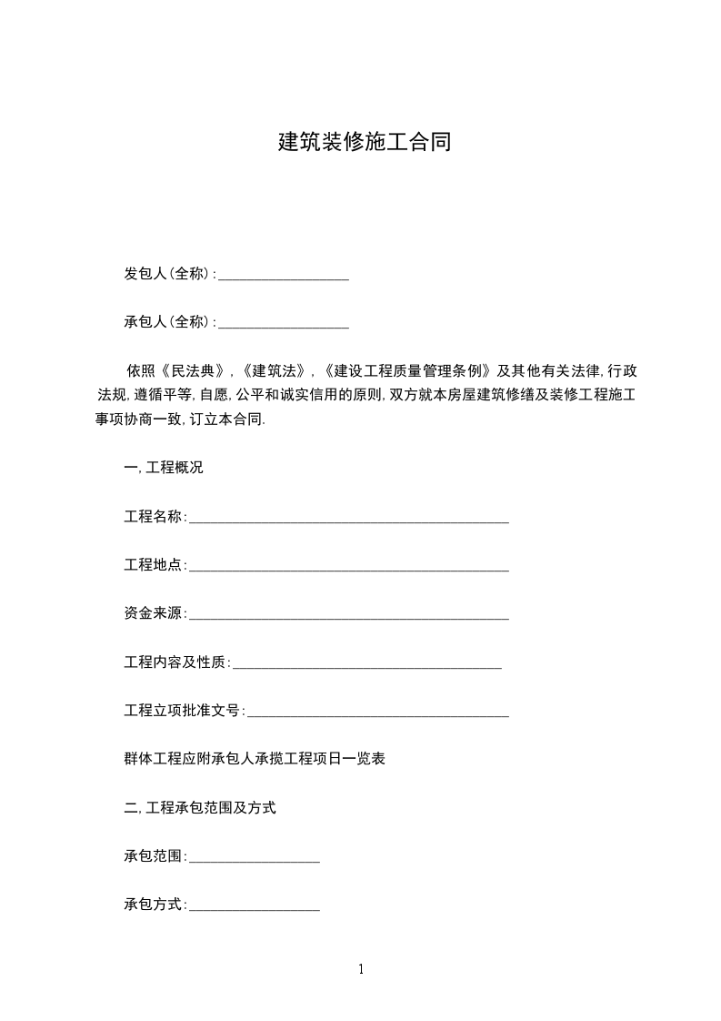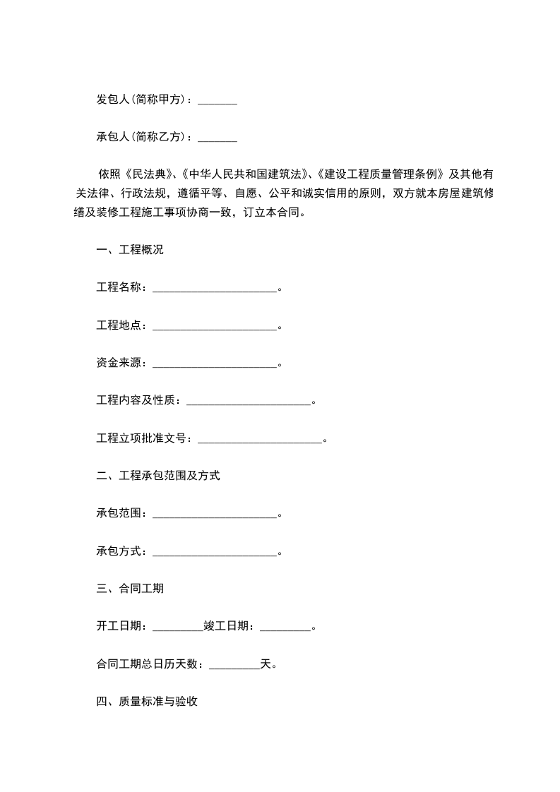 1.5工期:本工程自_____年______月______日开工, ______年______月_____日竣工。