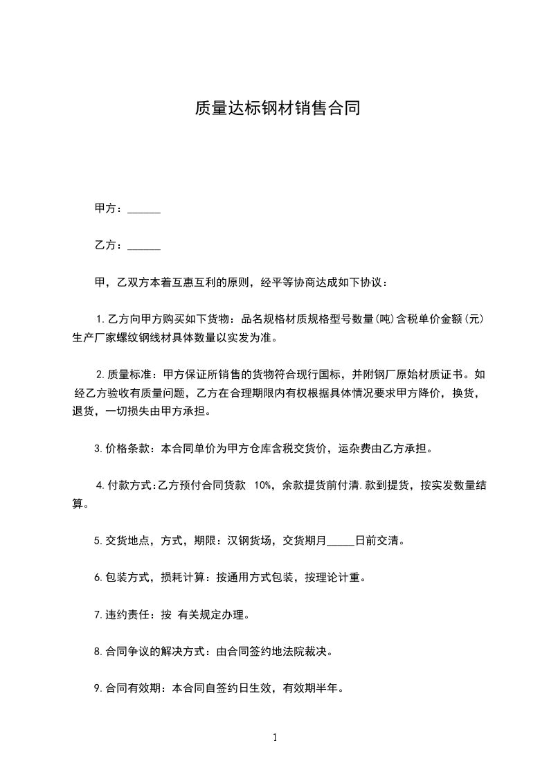 5.交货地点,方式,期限:汉钢货场,交货期月_____日前交清。