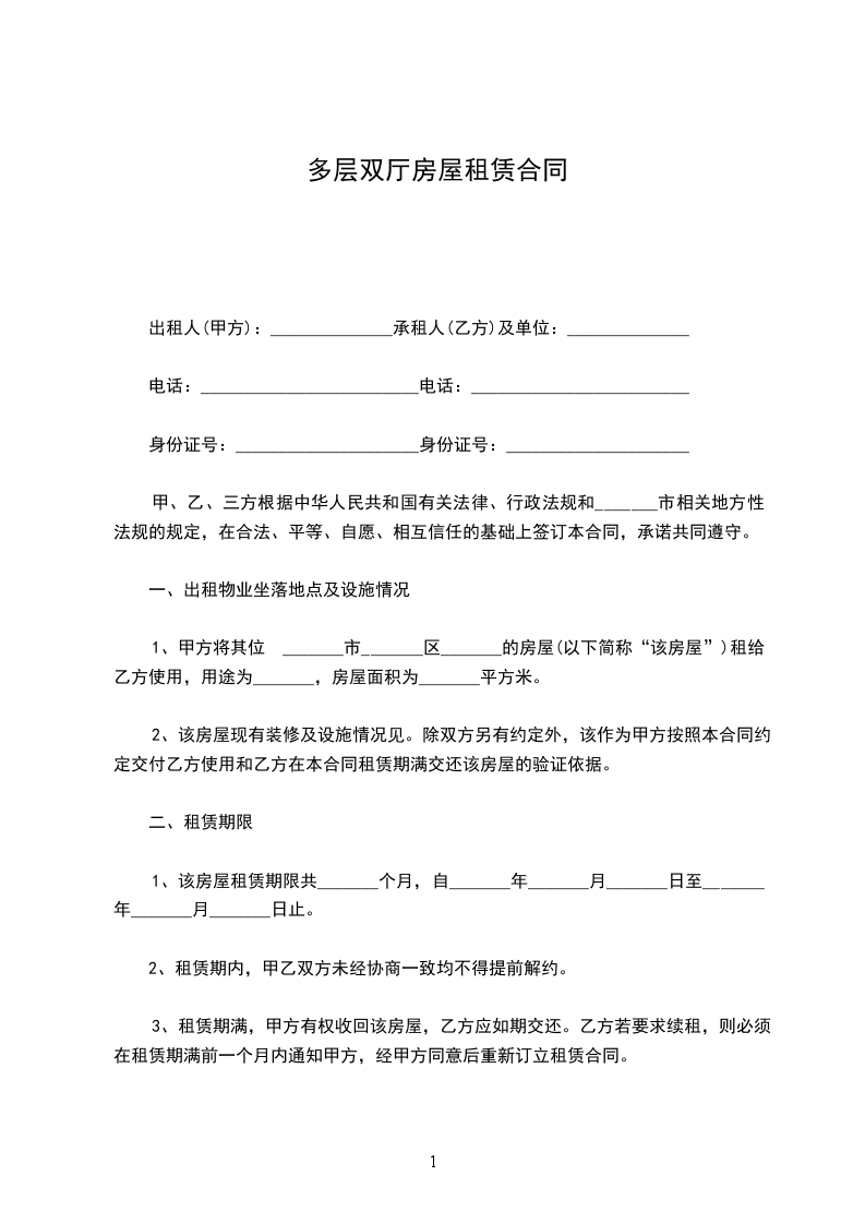 出租人(甲方):_____________承租人(乙方):___________________