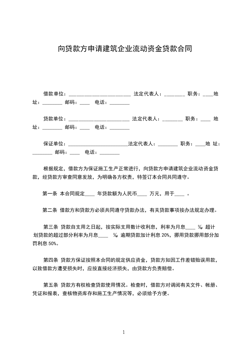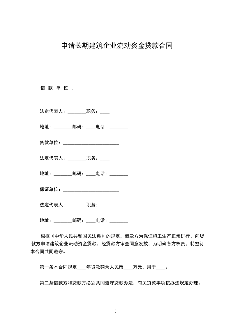 根据《中华人民共和国民法典》的规定,借款方为保证施工生产正常进行,向贷款方申请建筑企业流动资金贷款,经贷款方审查同意发放,为明确各方权责,特签订本合同共同遵守。