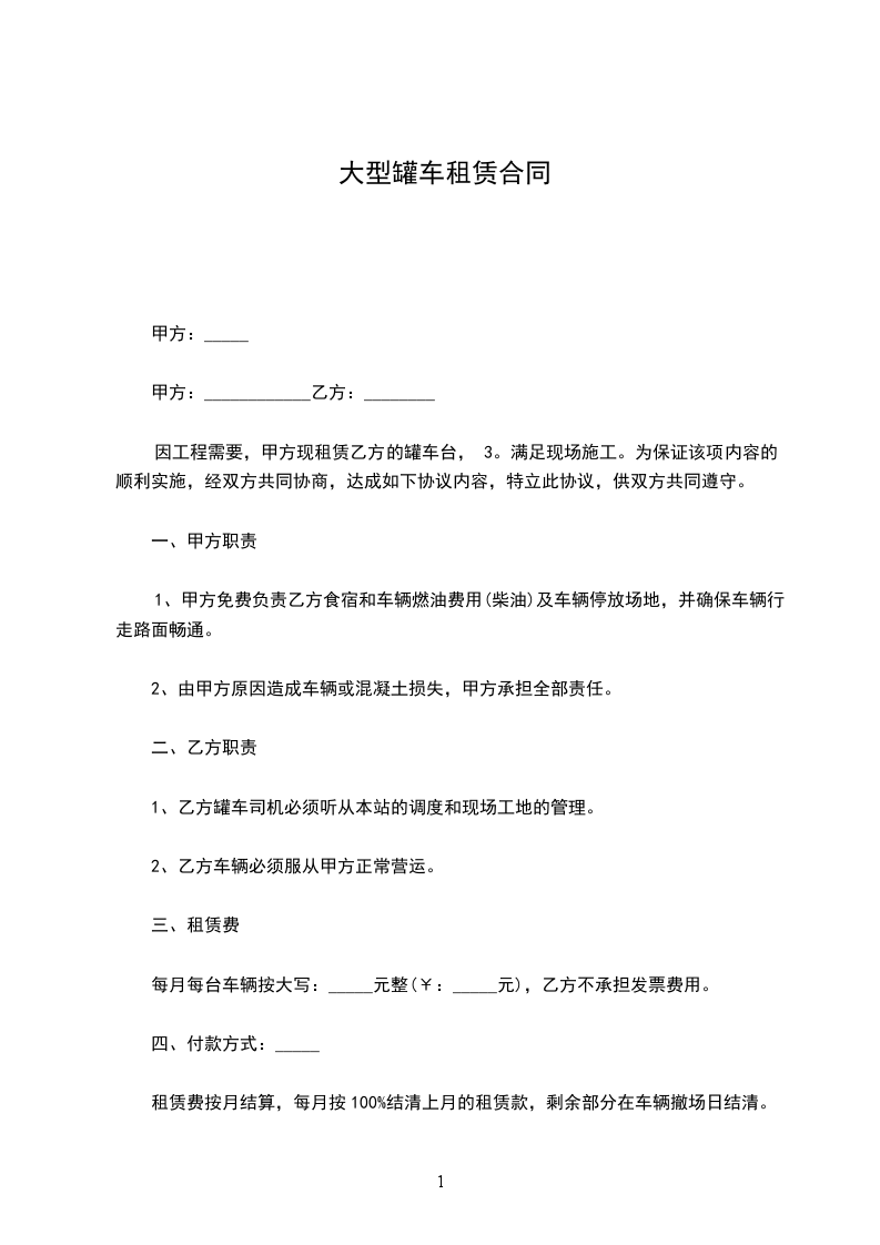 因工程需要,甲方现租赁乙方的罐车台, 3。满足现场施工。为保证该项内容的顺利实施,经双方共同协商,达成如下协议内容,特立此协议,供双方共同遵守。