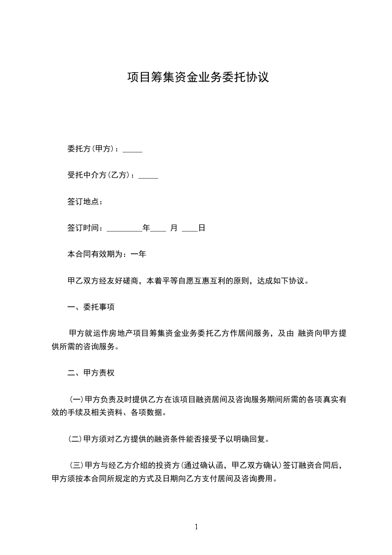 甲方就运作房地产项目筹集资金业务委托乙方作居间服务,及由 融资向甲方提供所需的咨询服务。
