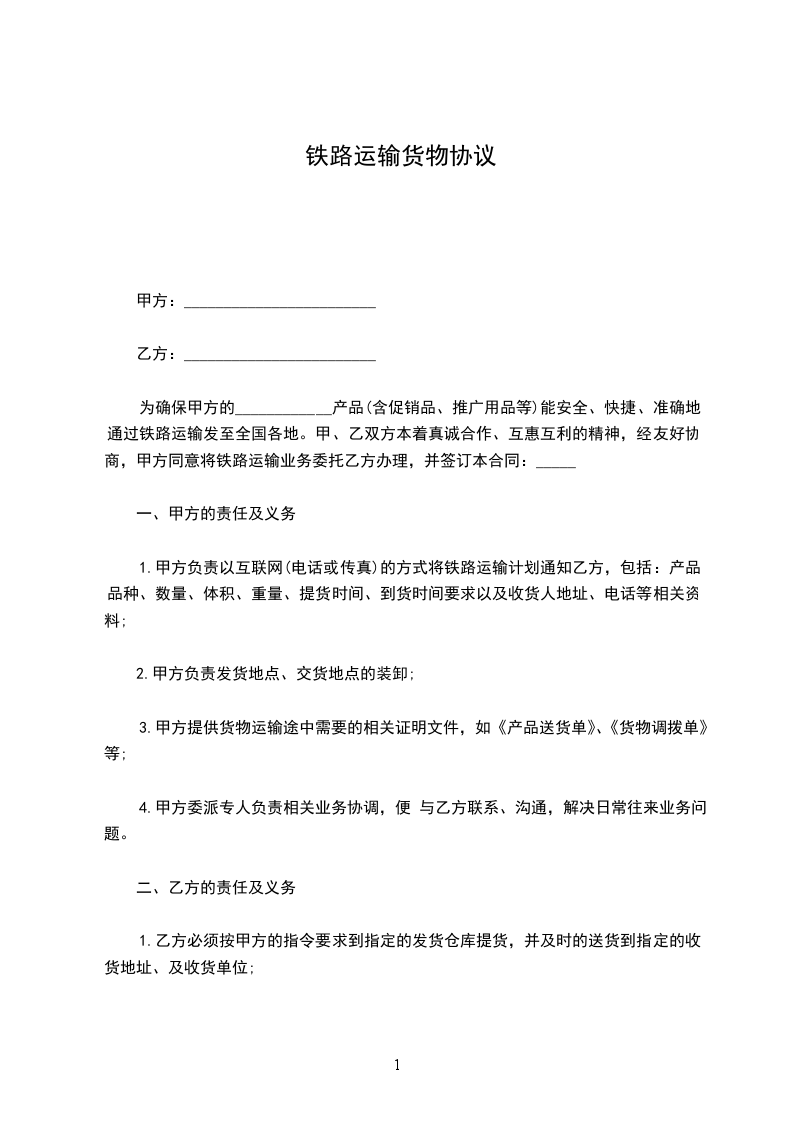 为确保甲方的____________产品(含促销品、推广用品等)能安全、快捷、准确地通过铁路运输发至全国各地。甲、乙双方本着真诚合作、互惠互利的精神,经友好协商,甲方同意将铁路运输业务委托乙方办理,并签订本合同:_____