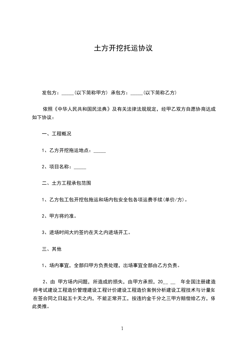 1、乙方开挖拖运地点:_____