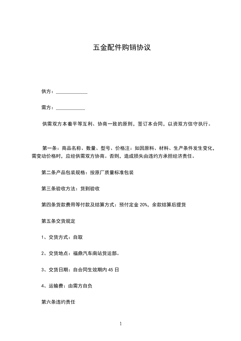 第一条:商品名称、数量、型号、价格注:如因原料、材料、生产条件发生变化,需变动价格时,应经供需双方协商。否则,造成损失由违约方承担经济责任。
