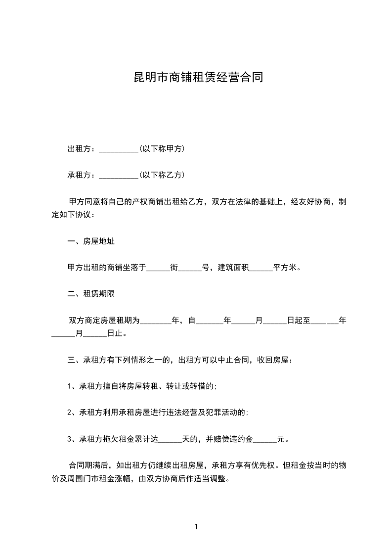 1、若出租方在承租方没有违反本合同的情况下提前解除合同或租给他人,视为甲方违约,负责赔偿违约金______元。