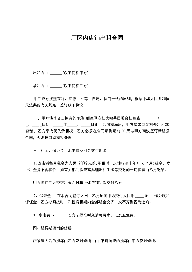 一、甲方将其合法拥有的座落 顺德区容桂大福基居委会桂福路_________年_____月_____日到 _____年_____月_____日止。合同期满后,甲方如果继续对外出租本店铺,乙方享有优先承租权,乙方必须在合同期到期前30天与甲方商议签订新租赁合同,否则按自动期权处理。