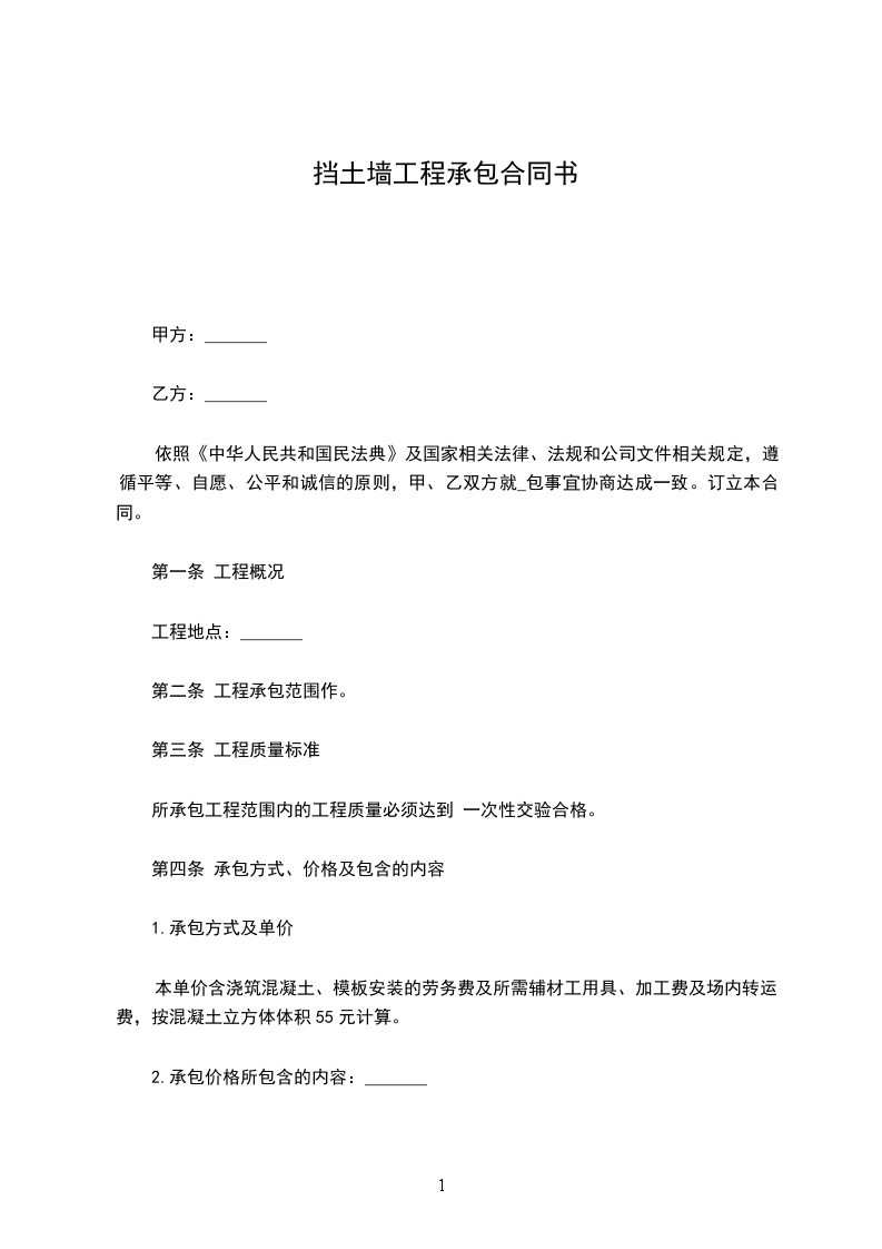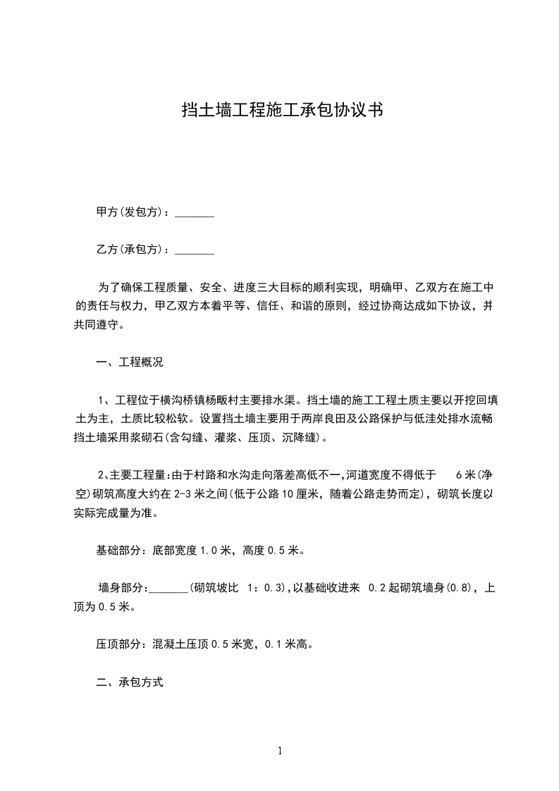 本工程甲方愿意将______休闲广场工程的浆砌石挡土墙这一项目承包给乙方,为了确保工程能如期完成,明确甲、乙的权利和义务,经甲、乙双方充分协商一致同意签订以下合同条款: