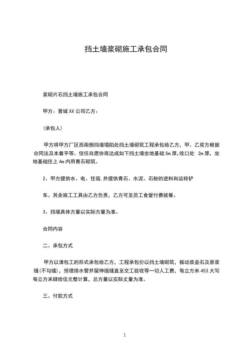 6)本合同自签订日起生效挡土墙完工验收后,付清工程款自行失效