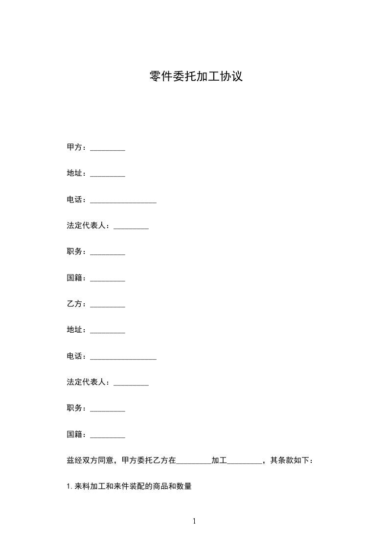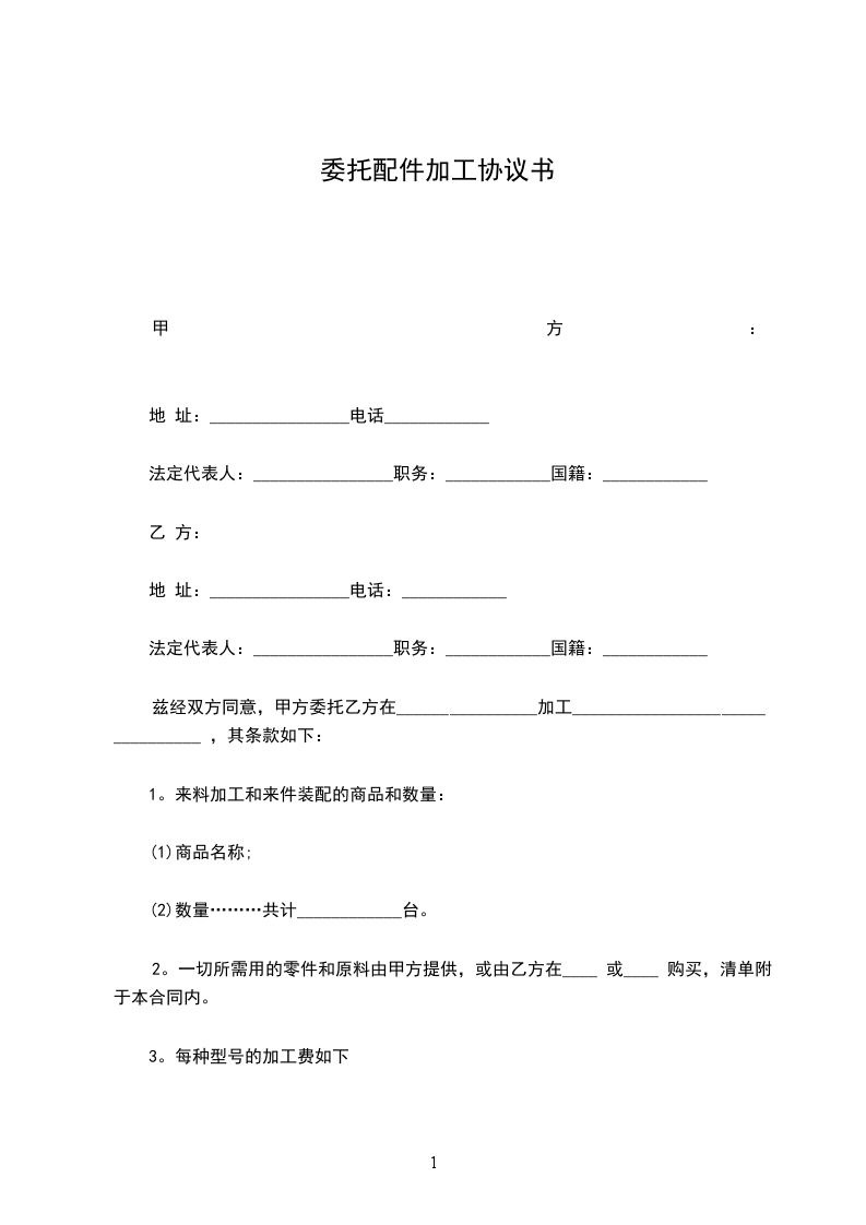 第一条代加工内容甲方委托乙方为其加工系列产品,加工数量、款式(或开发信息)、标准、质量要求由甲方提供,价格由双方协商确定,另在订单上详述。