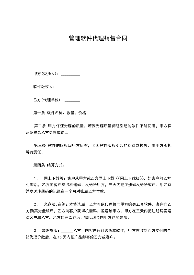3、 加密狗版:______乙方可向客户预订该版本软件,甲方在收到乙方支付的全部代理价款后,在15天内把产品邮寄给乙方或客户。