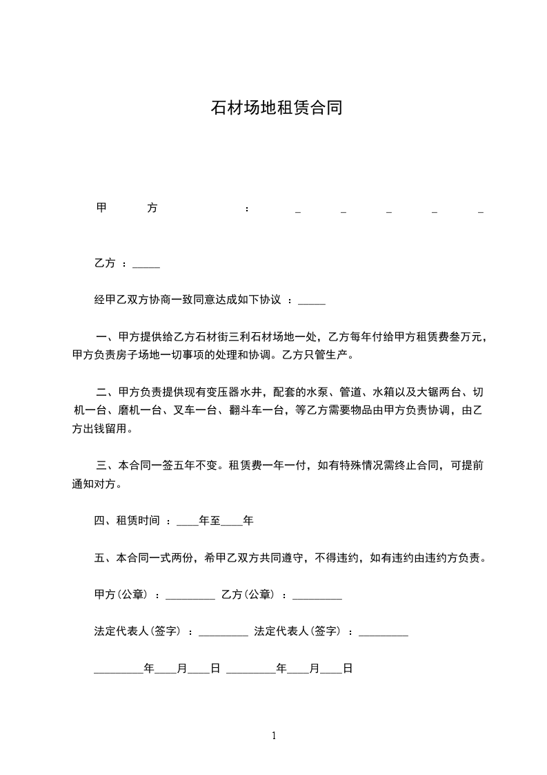 一、甲方提供给乙方石材街三利石材场地一处,乙方每年付给甲方租赁费叁万元,甲方负责房子场地一切事项的处理和协调。乙方只管生产。