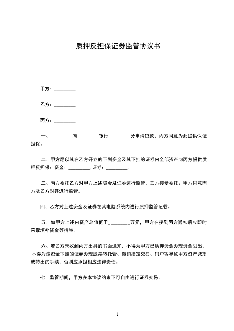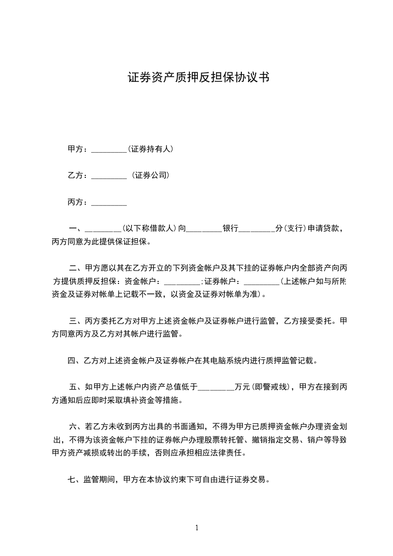 二、甲方愿以其在乙方开立的下列资金账户及其下挂的证券账户内全部资产向丙方提供质押反担保:资金账户:_________;证券账户:_________。