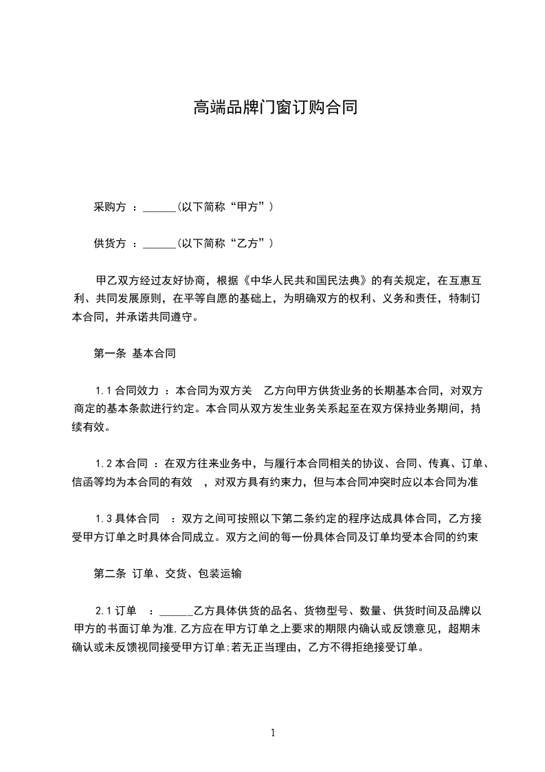 1.1合同效力 :本合同为双方关 乙方向甲方供货业务的长期基本合同,对双方商定的基本条款进行约定。本合同从双方发生业务关系起至在双方保持业务期间,持续有效。