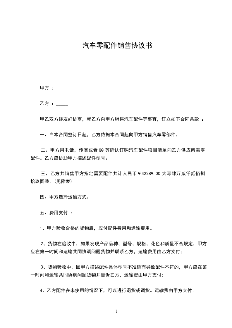 三、乙方共销售甲方指定需要配件共计人民币¥42289.00大写肆万贰仟贰佰捌拾玖圆整。(见附表)