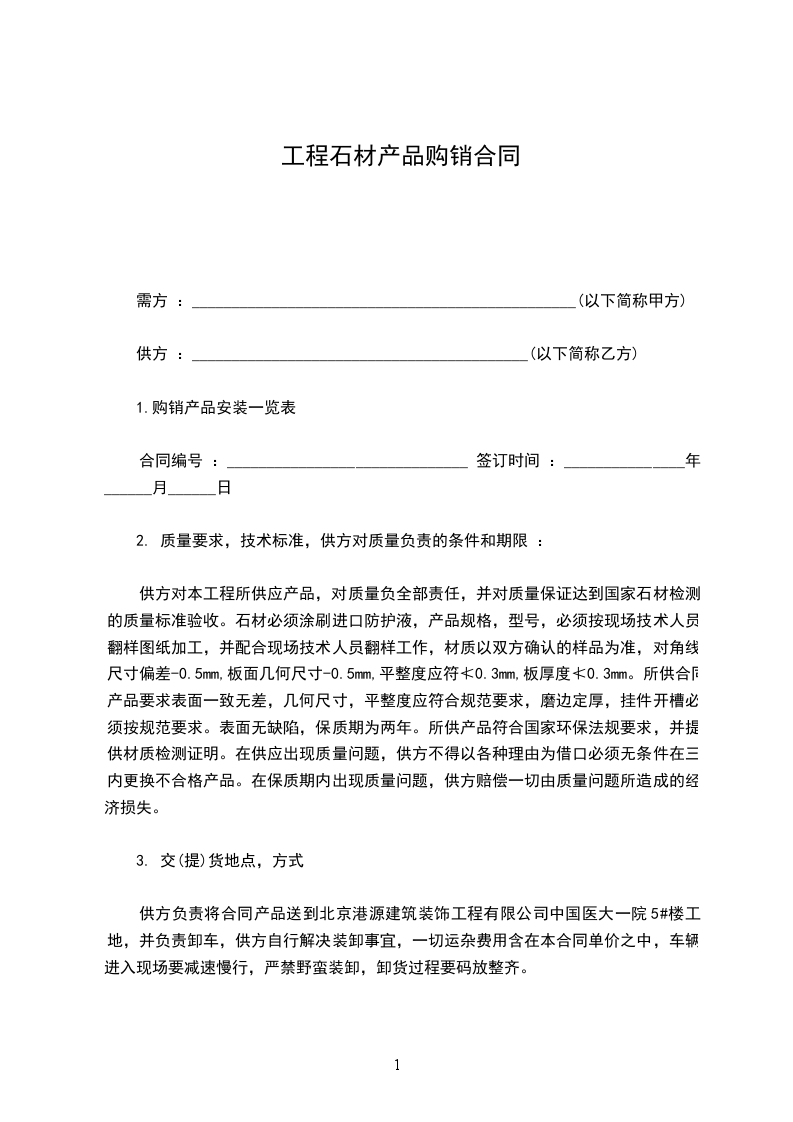 供方对本工程所供应产品,对质量负全部责任,并对质量保证达到国家石材检测的质量标准验收。石材必须涂刷进口防护液,产品规格,型号,必须按现场技术人员翻样图纸加工,并配合现场技术人员翻样工作,材质以双方确认的样品为准,对角线尺寸偏差-0.5mm,板面几何尺寸-0.5mm,平整度应符≮0.3mm,板厚度≮0.3mm。所供合同产品要求表面一致无差,几何尺寸,平整度应符合规范要求,磨边定厚,挂件开槽必须按规范要求。表面无缺陷,保质期为两年。所供产品符合国家环保法规要求,并提供材质检测证明。在供应出现质量问题,供方不得以各种理由为借口必须无条件在三内更换不合格产品。在保质期内出现质量问题,供方赔偿一切由质量问题所造成的经济损失。