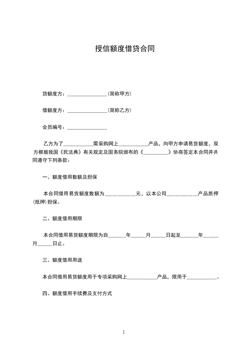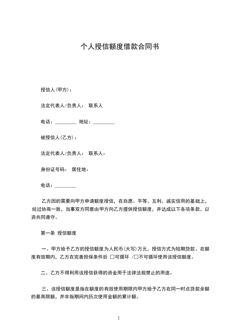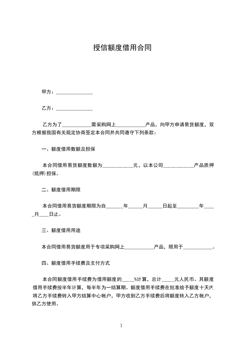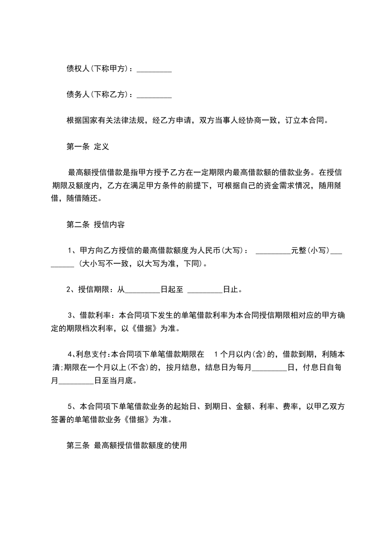 1、甲方向乙方授信的最高借款额度为人民币(大写) :______元整