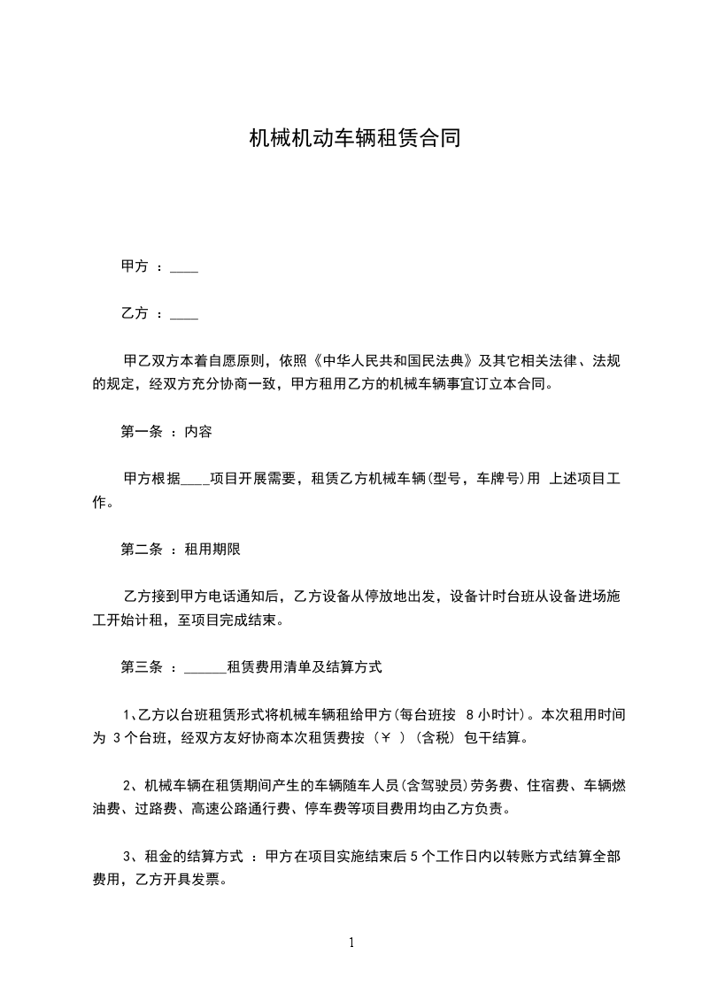 1、租赁期内,乙方承担下列费用 :车辆租赁期间所产生的路、桥通行费、停车费、燃油费(或燃气、电费)。