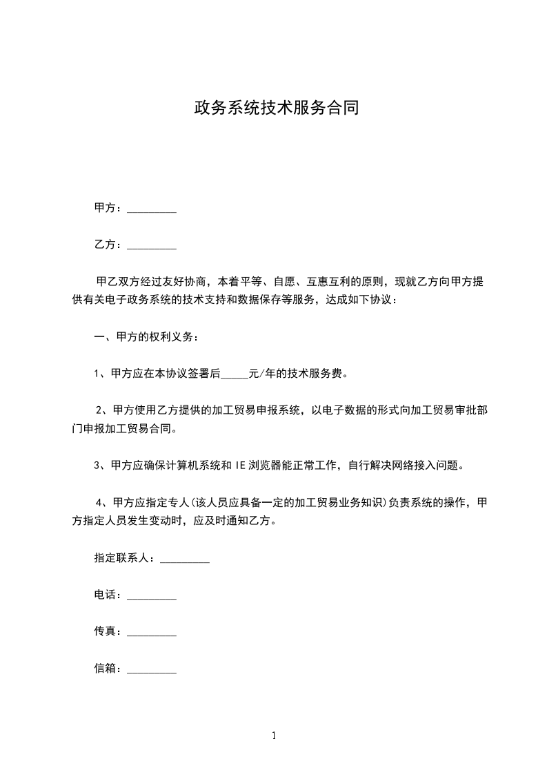 甲乙双方经过友好协商,本着平等、自愿、互惠互利的原则,现就乙方向甲方提供有关电子政务系统的技术支持和数据保存等服务,达成如下协议: