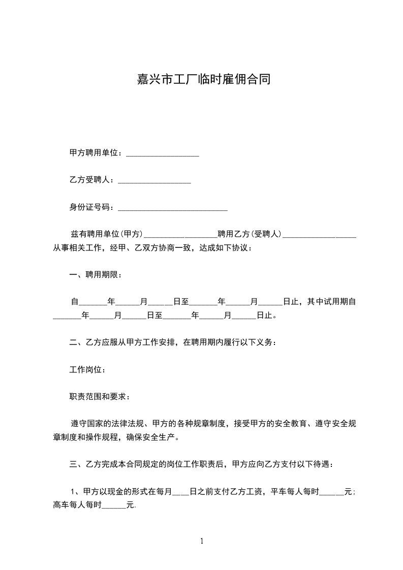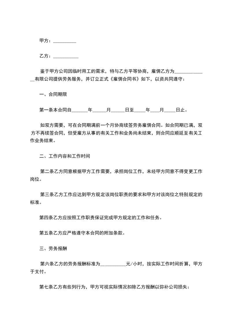 一、聘用期限 :_____
