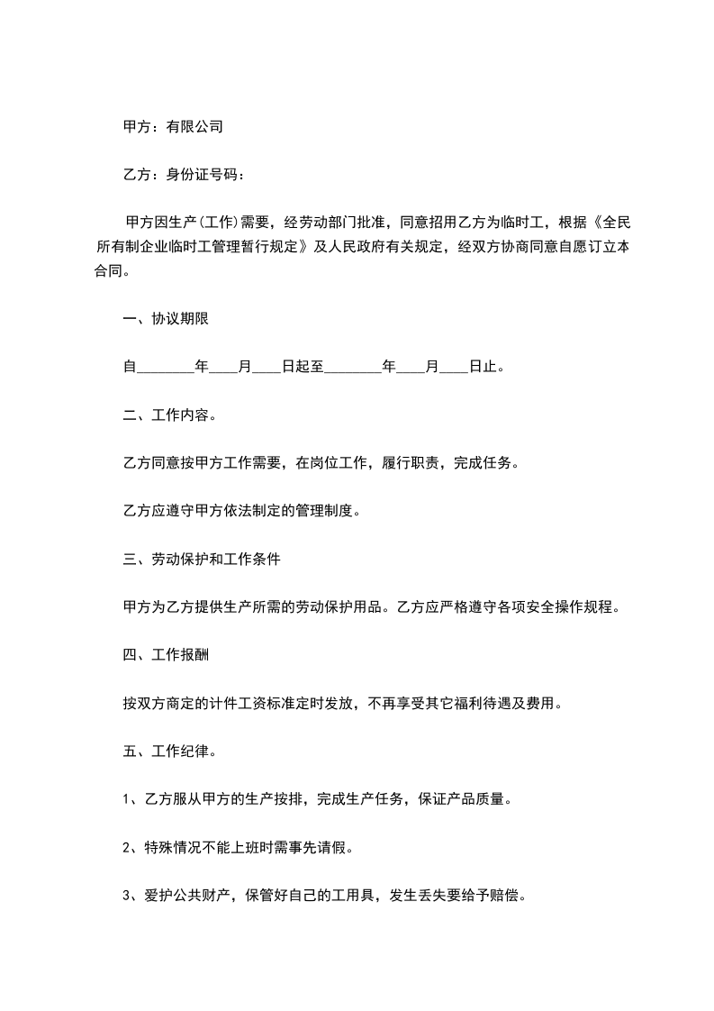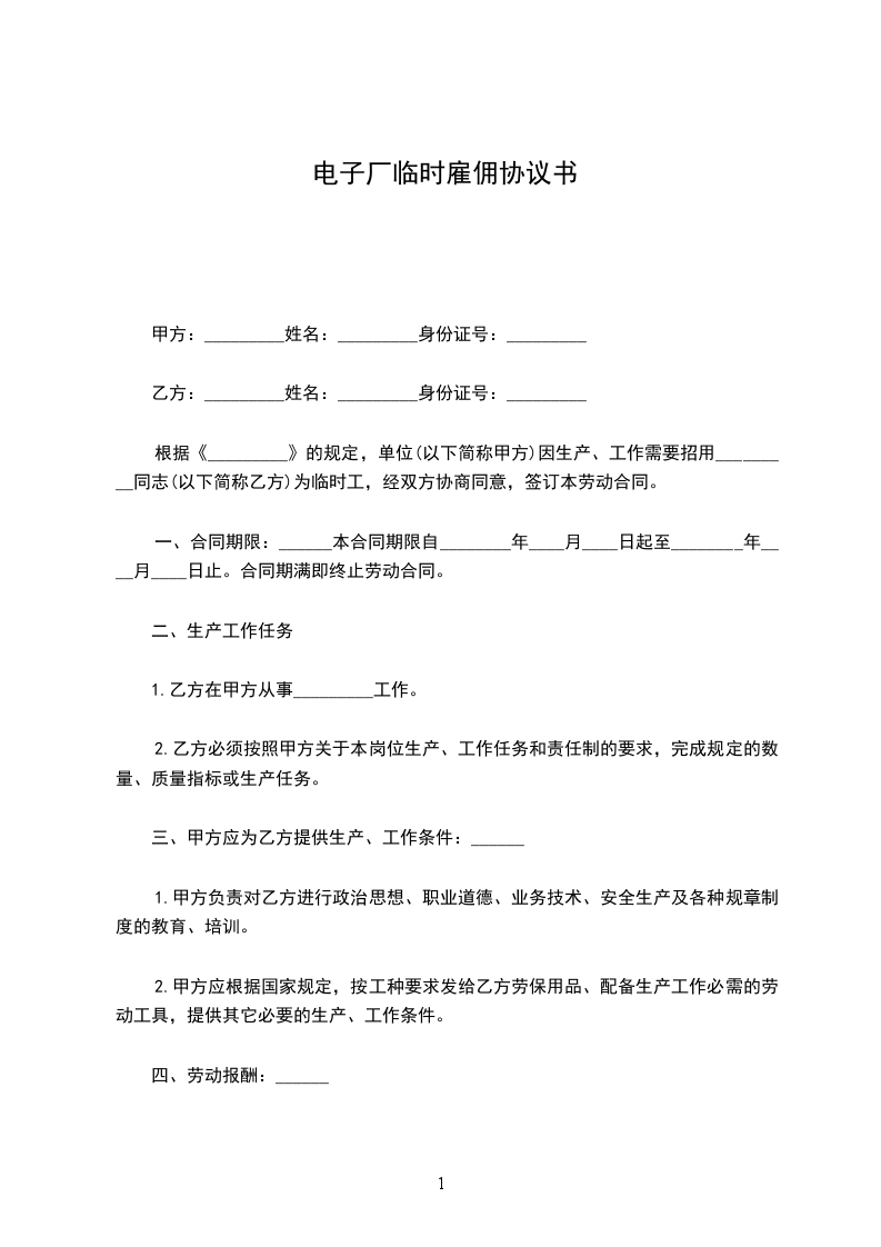 乙方 :______受 聘 人 :______身份证号码 :_____