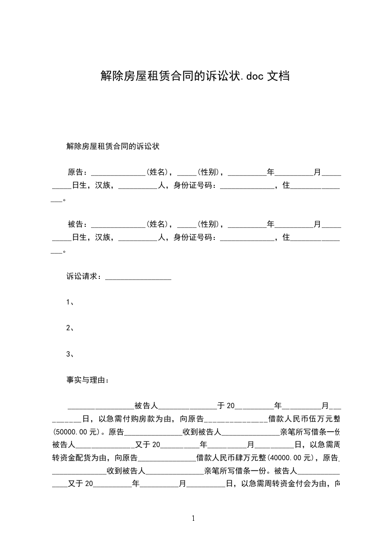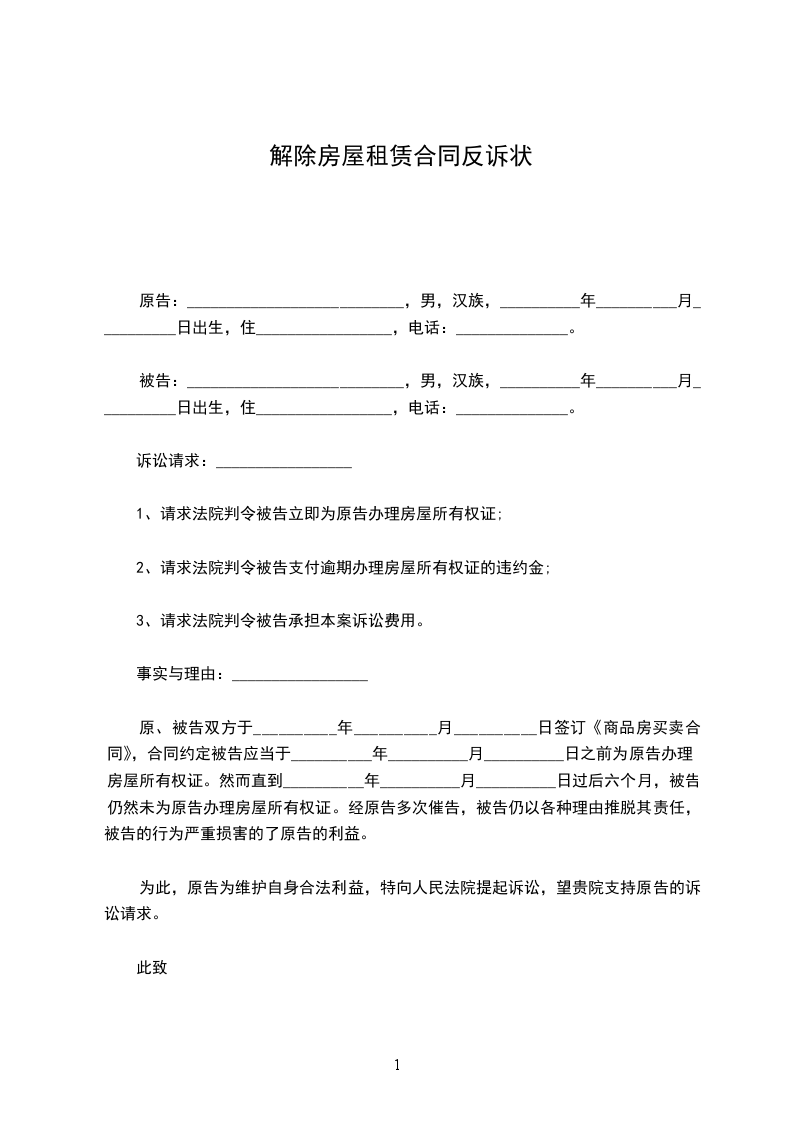 1、请求法院判令被告于 之前搬出租赁房屋;