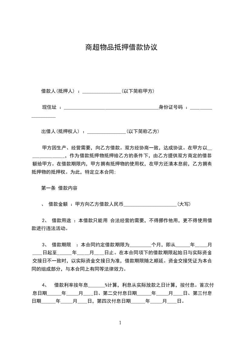 第一条 借款内容