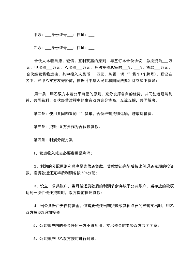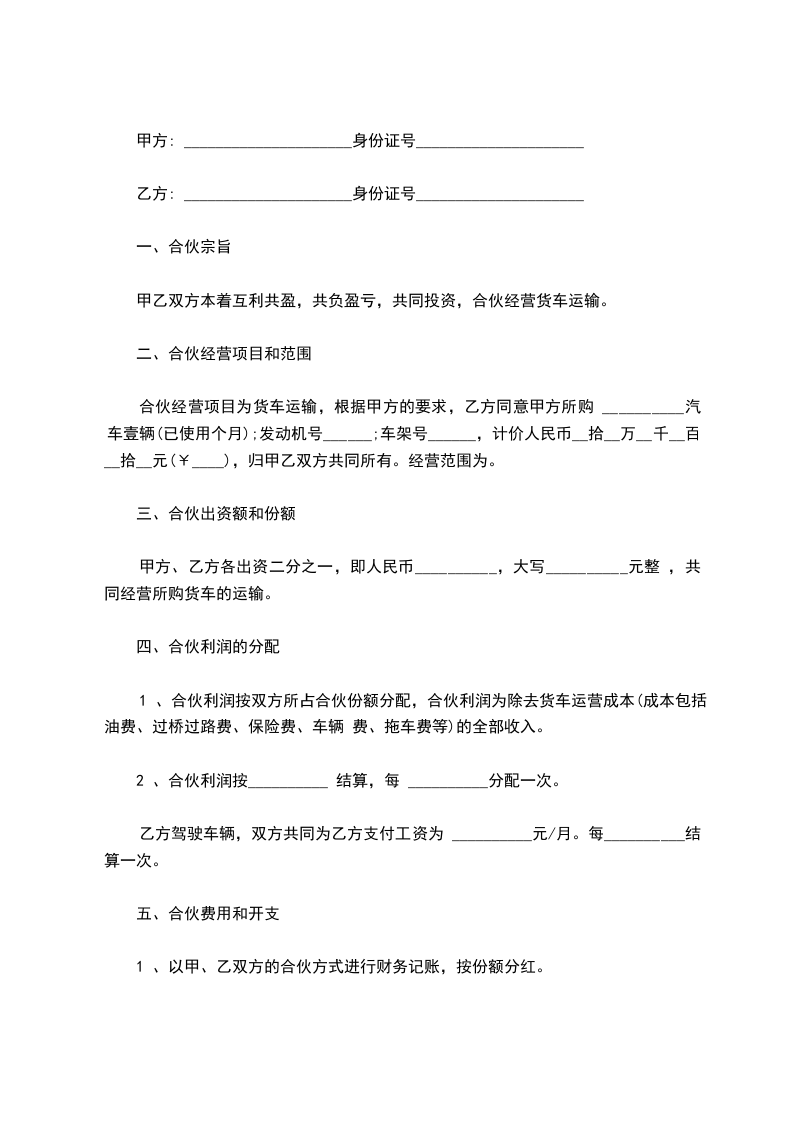 1、由甲方合伙合资经营远大货运站,所有财产折价为_____元正(_____元),占股权100%,现甲方愿意将其合营公司的股权_____%以人民币_____万元转让给乙方,乙方愿意受让;