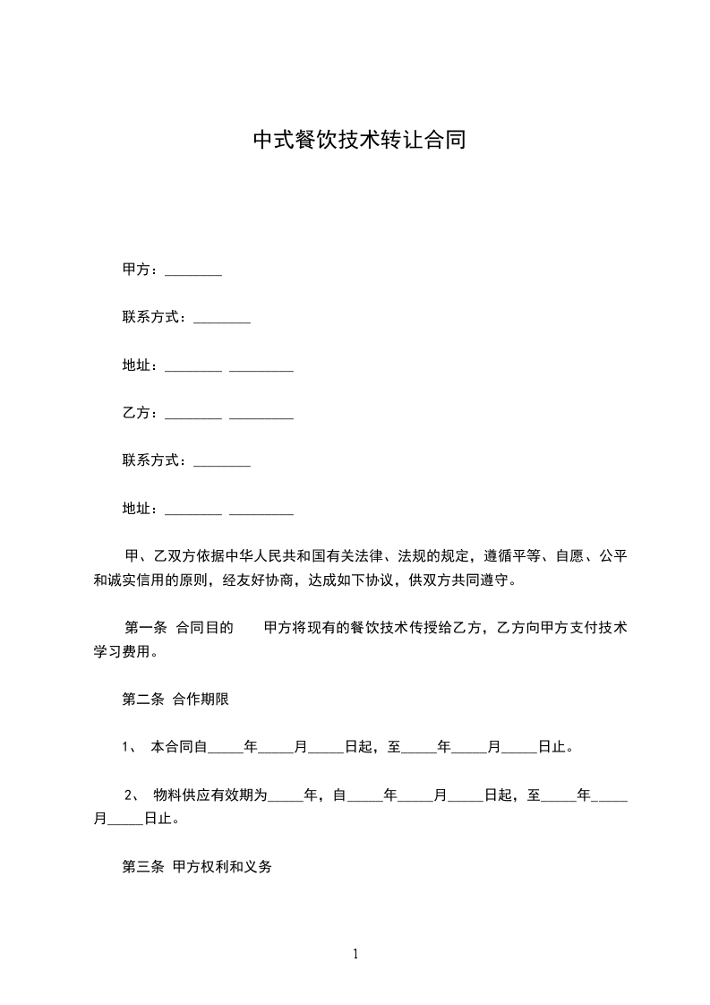 本合同由甲、乙双方就鹅掌汤锅、干锅鸭翅技术转让事宜, ________年____月____日在____________________订立。 甲方同意将鹅掌汤锅、干锅鸭翅技术转让给乙方。甲乙双方本着平等互利的原则,经友好协商,达成并遵守下列合同条款。