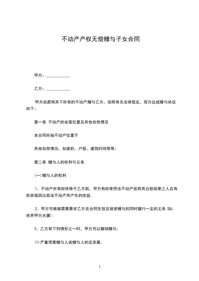 甲方自愿将其下所有的不动产赠与乙方。按照有关法律定,双方达成赠与协议如下: