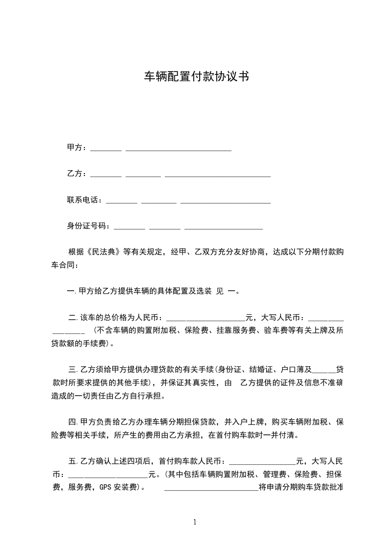 根据《民法典》等有关规定,经甲、乙双方充分友好协商,达成以下分期付款购车合同: