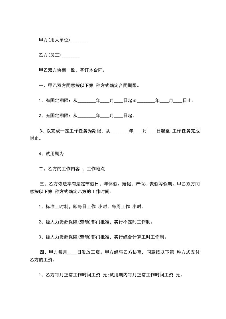 2、无固定期限:从________年____月____日起。