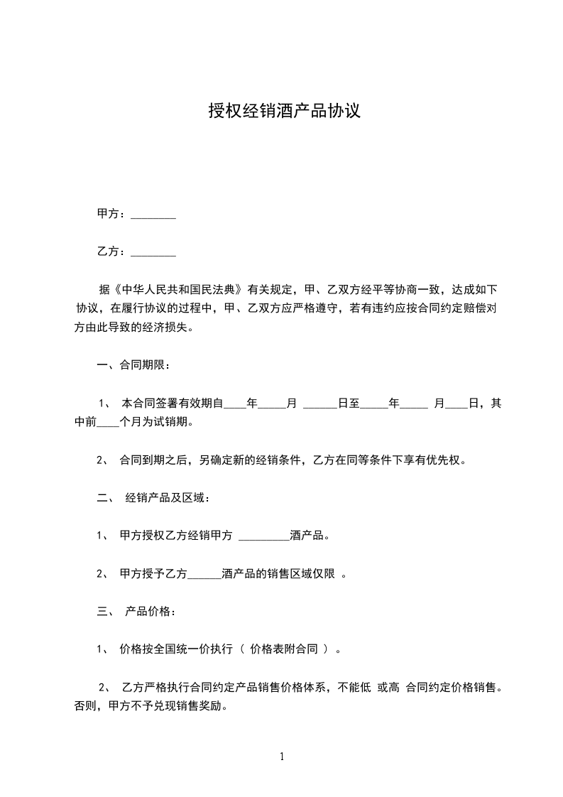 1、 甲方授权乙方经销甲方 _________酒产品。