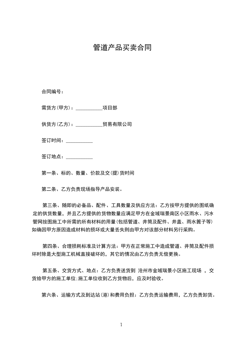 第三条、随即的必备品、配件、工具数量及供应方法:乙方按甲方提供的图纸确定的供货数量,并且乙方提供的货物数量应满足甲方在金域瑞景南区小区雨水、污水管网按图施工中所需的所有材料的用量(包括管道、井筒及配件、井盖、雨水篦子等)。如确因甲方原因造成材料的损坏或大量丢失则由甲方对该部分材料另行采购。