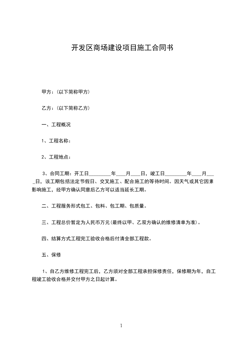 7、 乙方应一次性向甲方支付履约保证金壹万元,项目全部竣工付款完成后甲方退还给乙方,本履约保证金不予计息。
