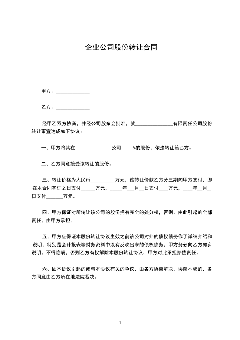 1、甲方同意将所持有的______房地产开发有限公司%的股份共_____元出资额,以万元转让给乙方,乙方同意按此价格及金额购买上述股份。