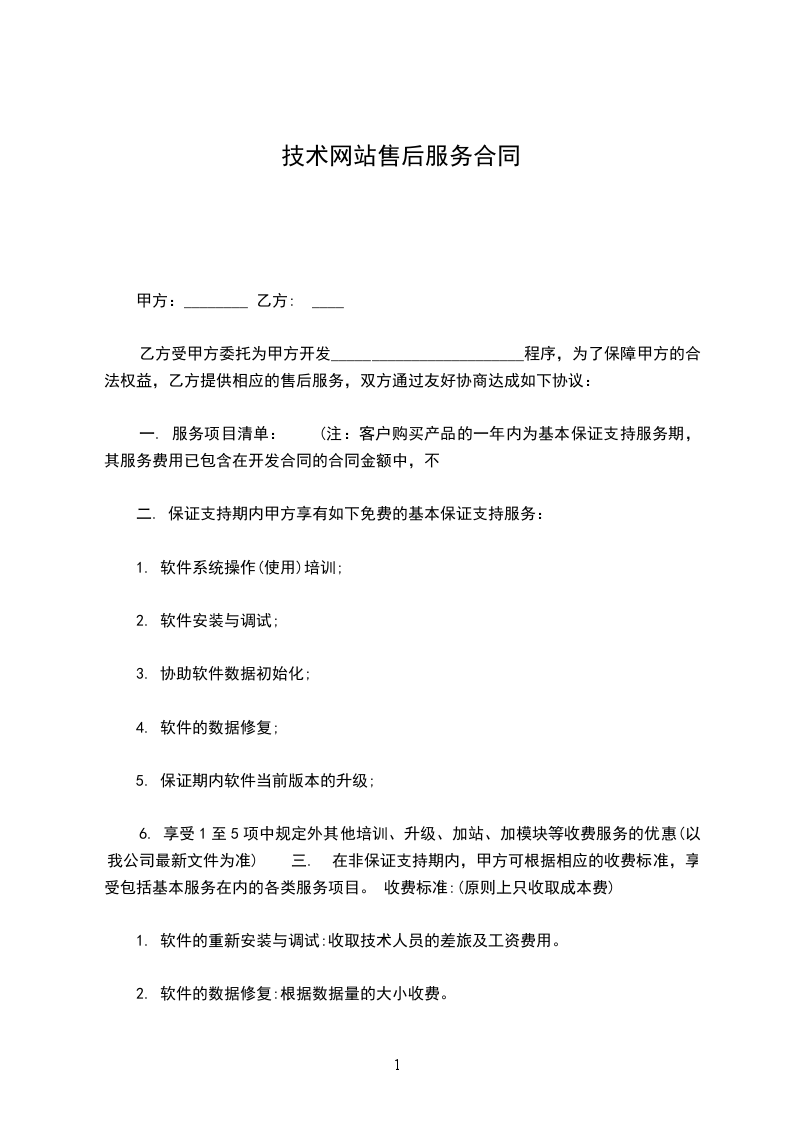 乙方受甲方委托为甲方开发________________________程序,为了保障甲方的合法权益,乙方提供相应的售后服务,双方通过友好协商达成如下协议: