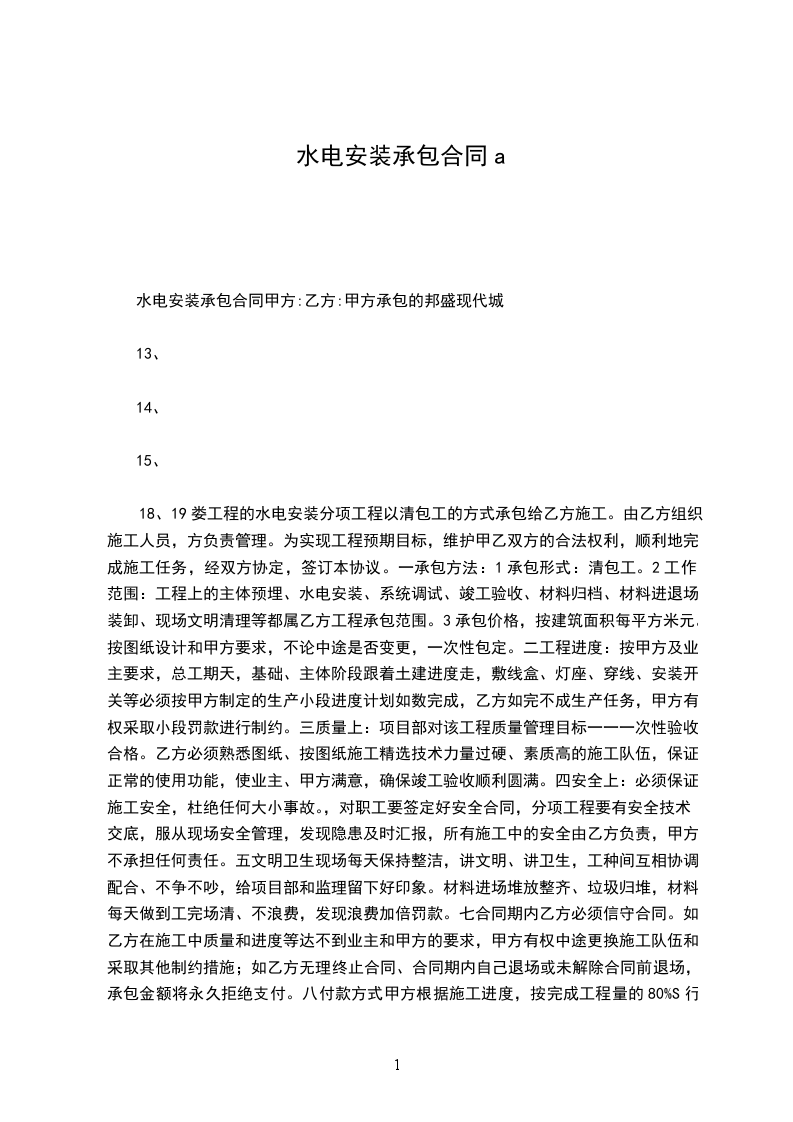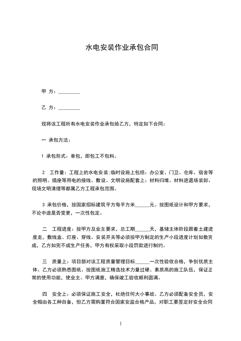 2水电安装的所有工器具乙方自备,甲方不再提供相应的工器具。