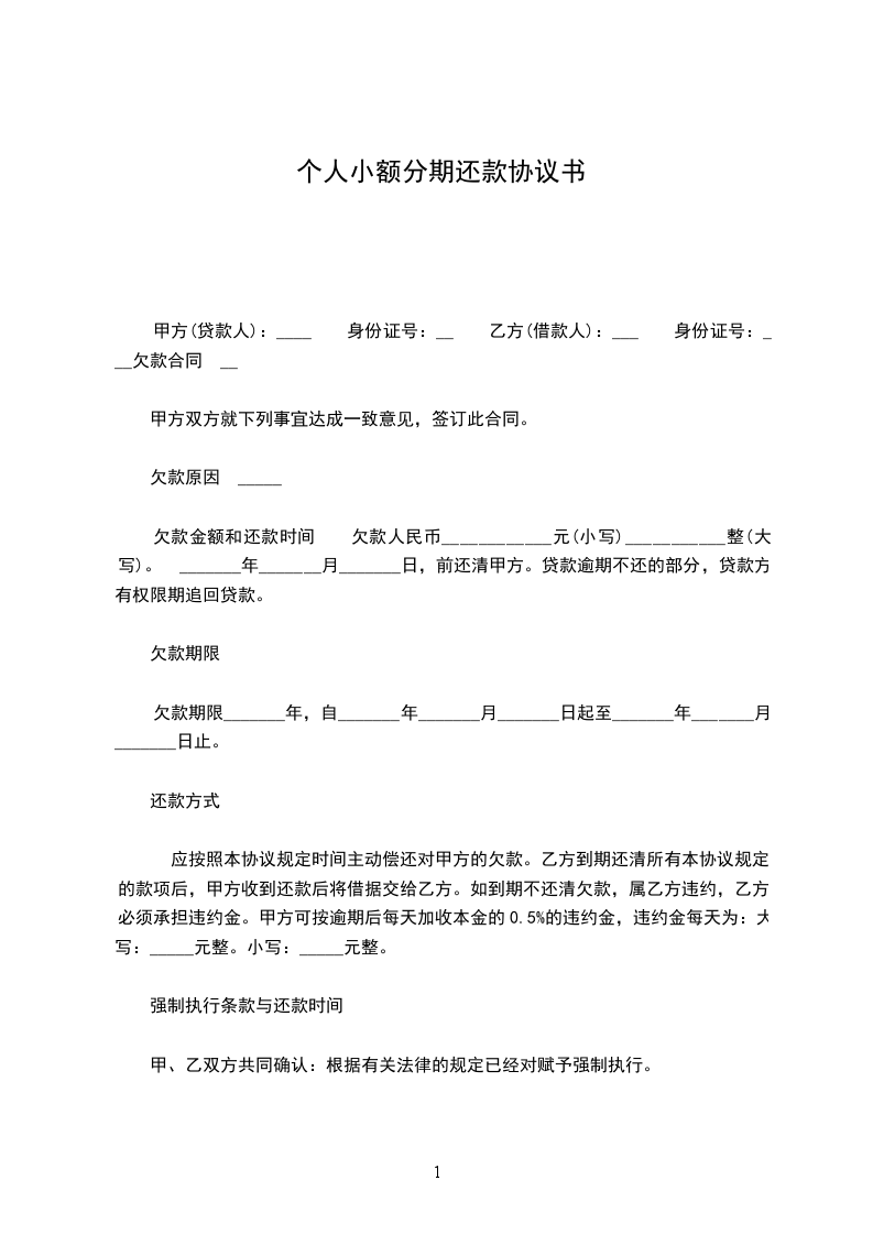 应按照本协议规定时间主动偿还对甲方的欠款。乙方到期还清所有本协议规定的款项后,甲方收到还款后将借据交给乙方。如到期不还清欠款,属乙方违约,乙方必须承担违约金。甲方可按逾期后每天加收本金的0.5%的违约金,违约金每天为:大写:_____元整。小写:_____元整。