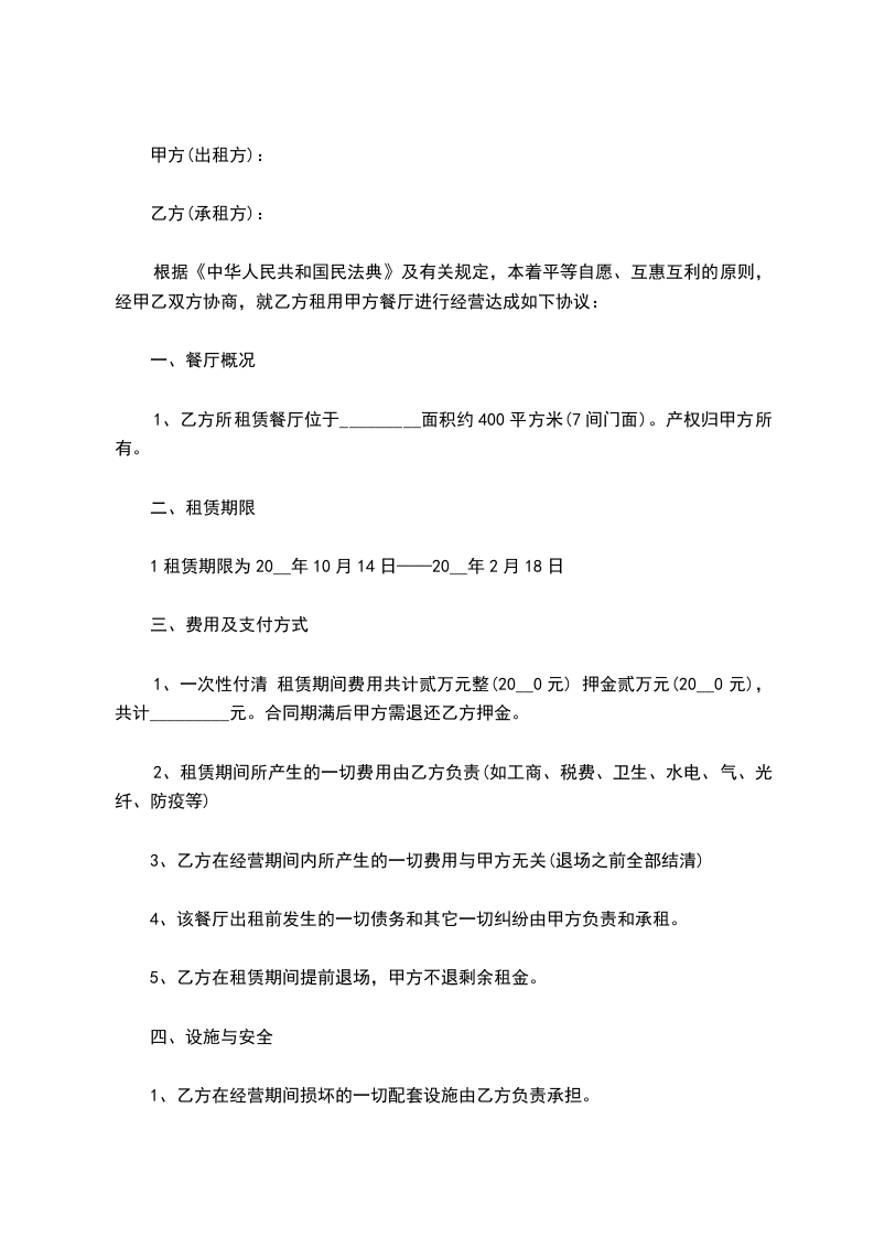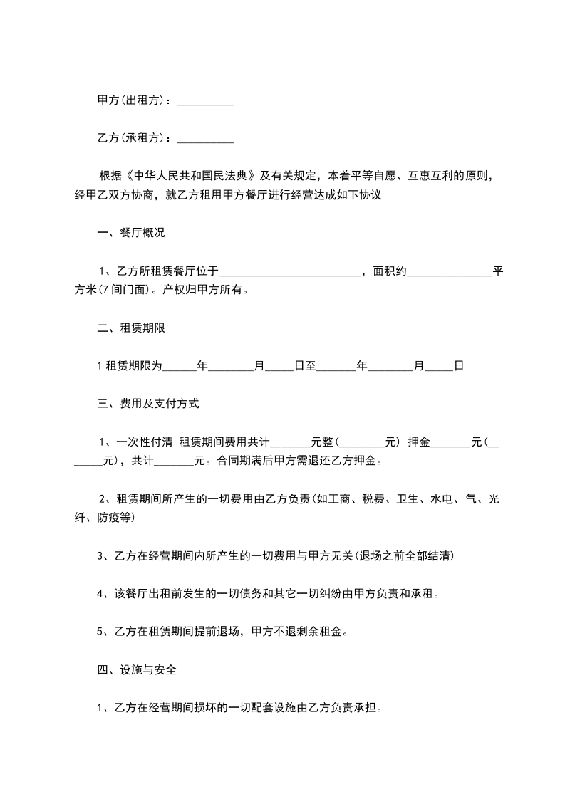 7、若因甲方提前退租,影响乙方不能正常营业或者不能经营,甲方需向乙方赔偿费用元。