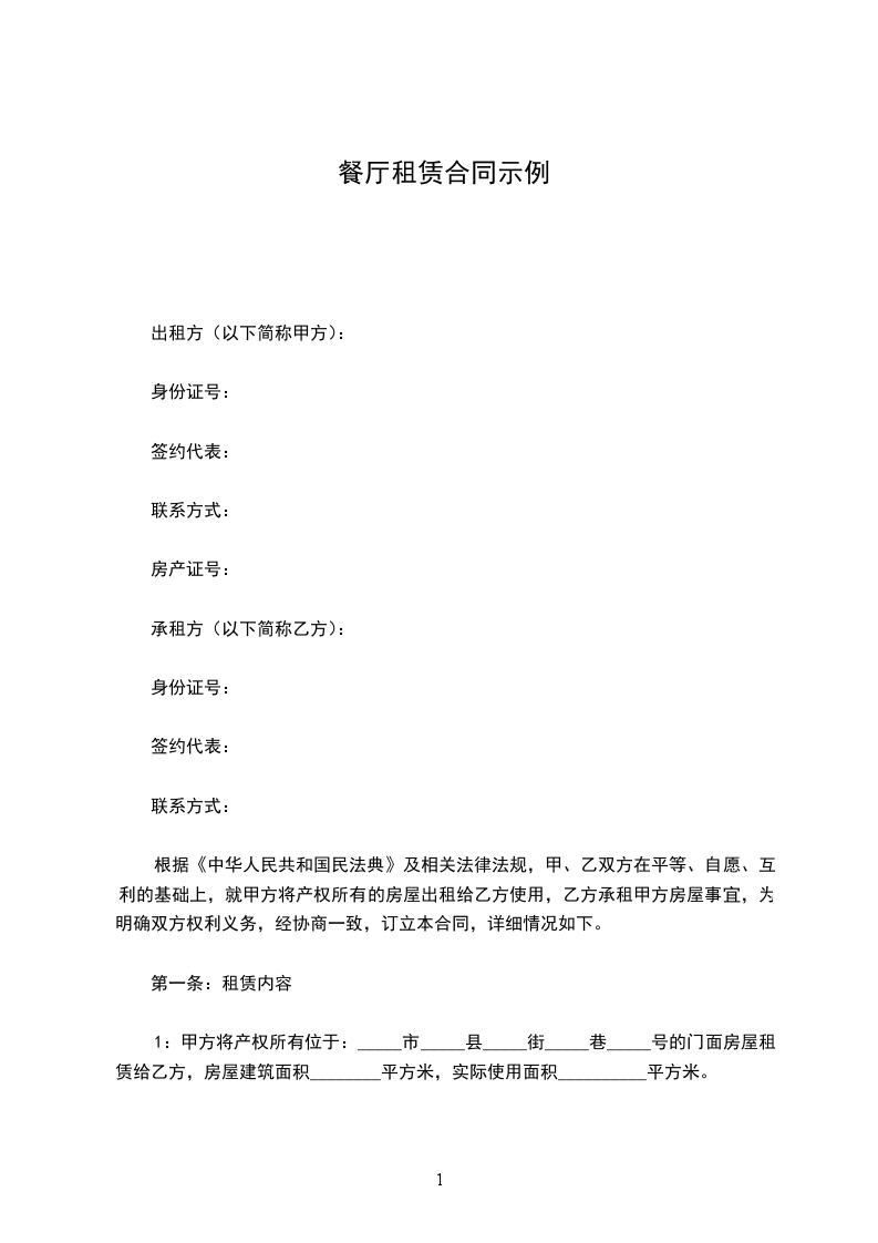 二、 租用面积 :建筑物面积为_____平方米 。租赁物及附属设施设备详见交接清单 :_____
