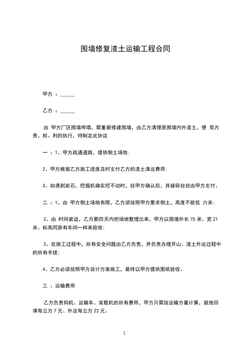 一 :1、甲方疏通道路,提供倒土场地;