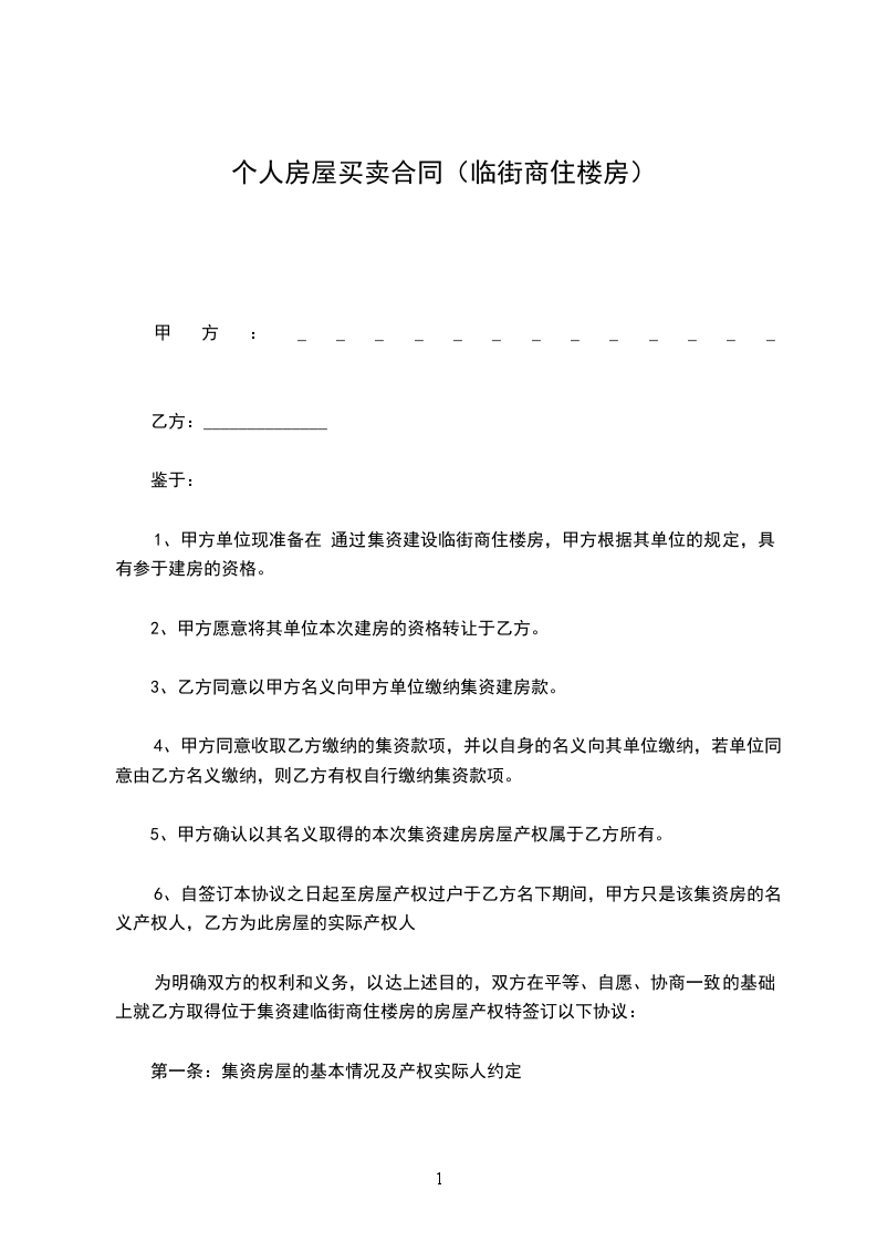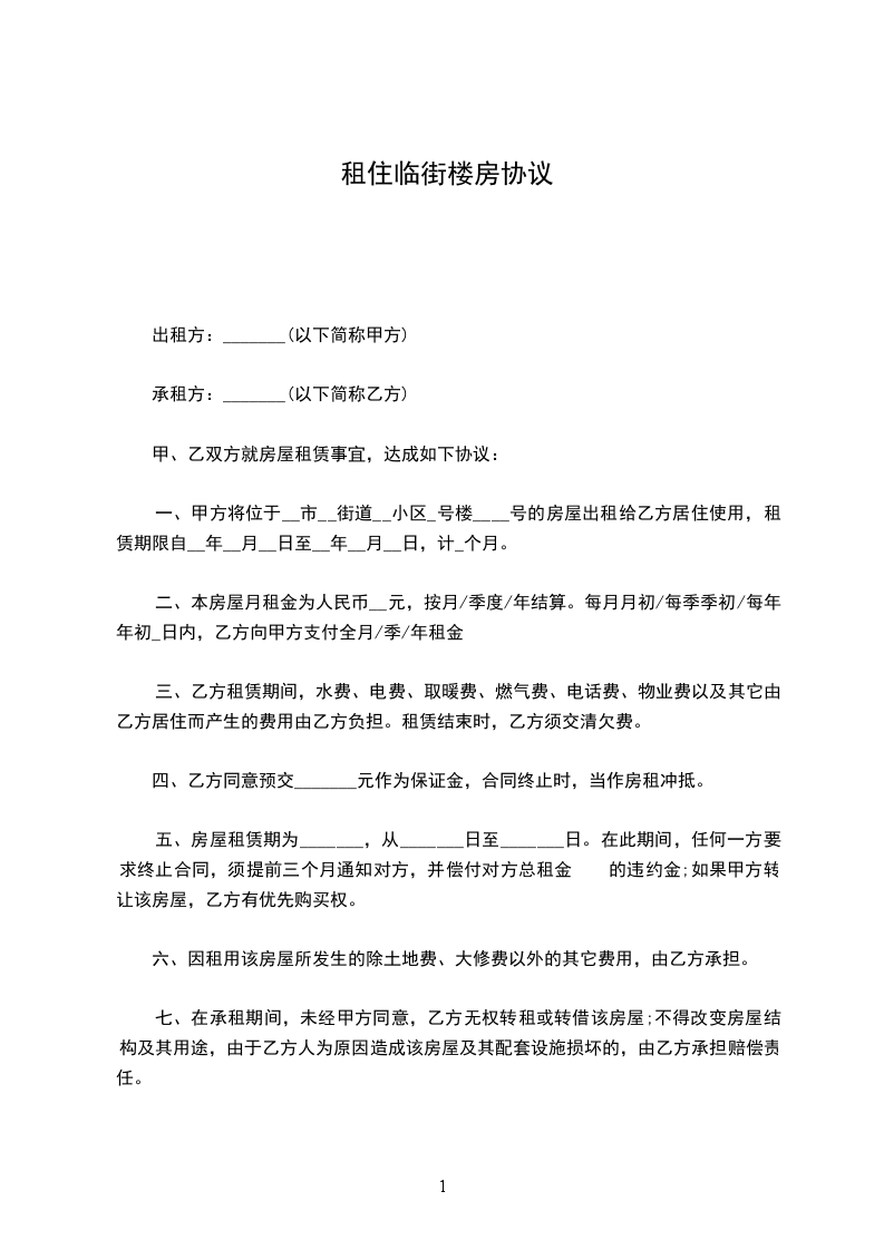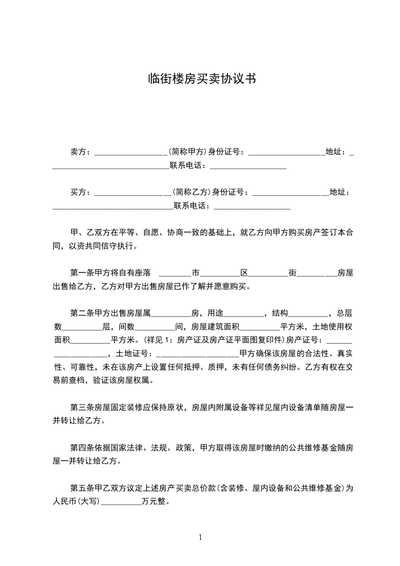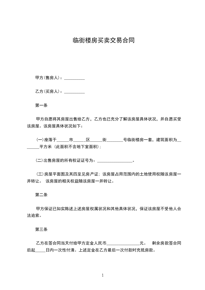 (一)座落于______市______区______街________号临街楼房一套,建筑面积为________平方米 (此面积不含地下室面积);