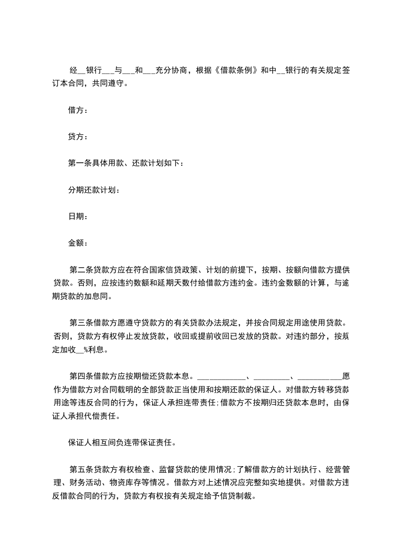 5.借款人有承包、租赁、合并、分立、联营等改变经营方式行为,均应最迟 变更前30天书面通知贷款人,并积极落实债务;否则,贷款人有权采取相应的制裁措施和使贷款免受损失的防范措施。