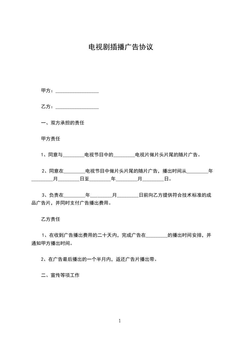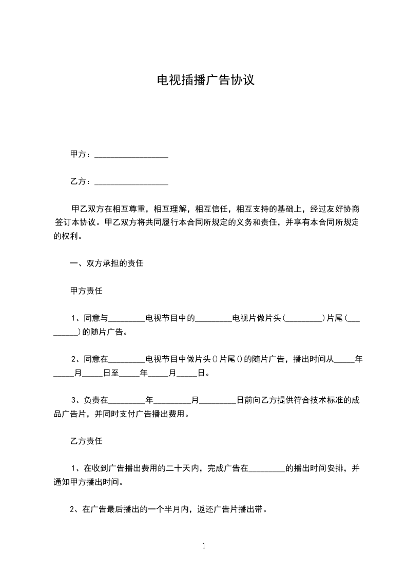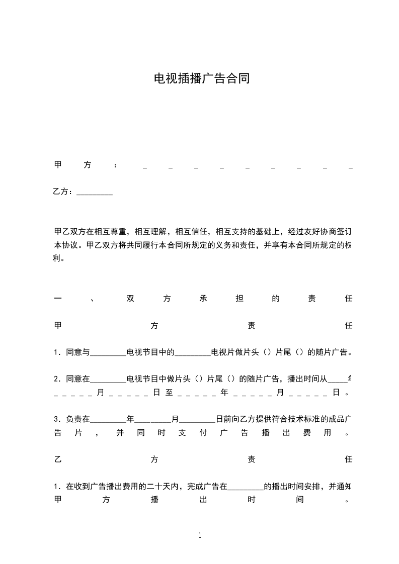 2.同意在_________电视节目中做片头()片尾()的随片广告,播出时间从_____年_____月_____日至_____年_____月_____日。