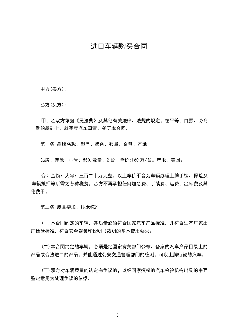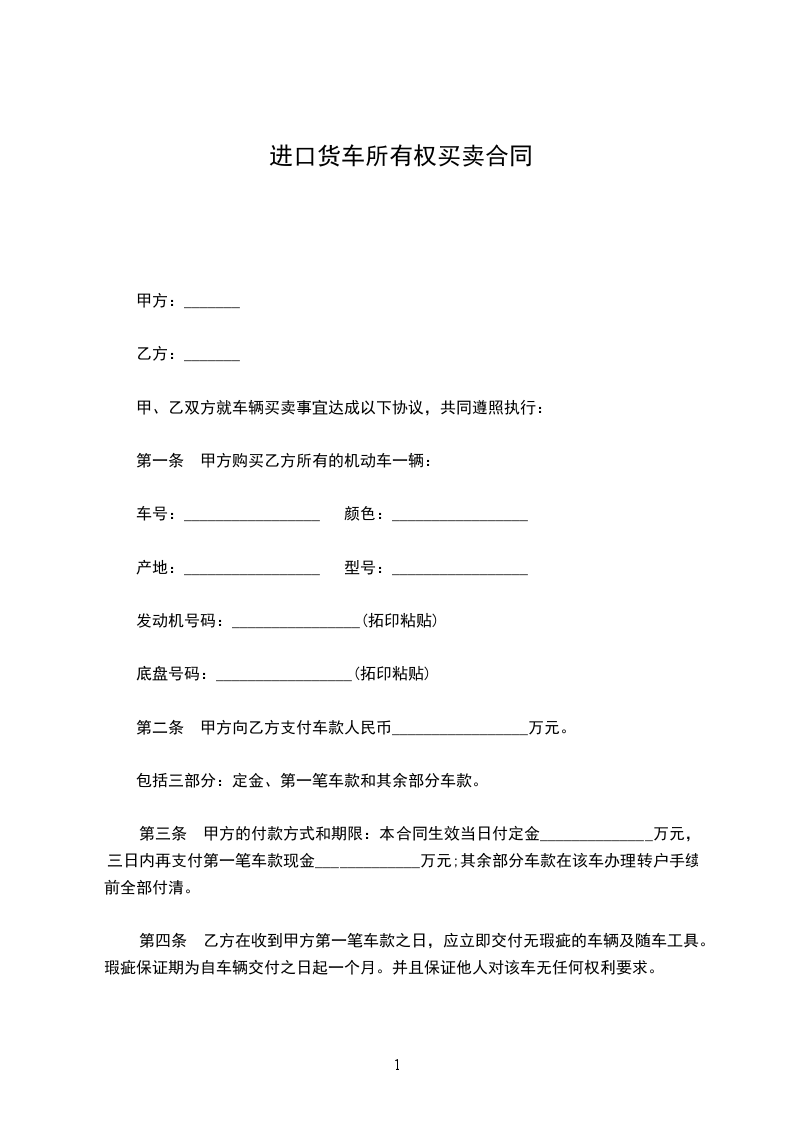 第三条车辆价款:人民币__________________元(大写:__________________元)。