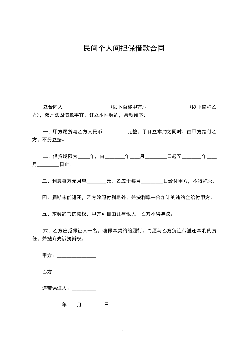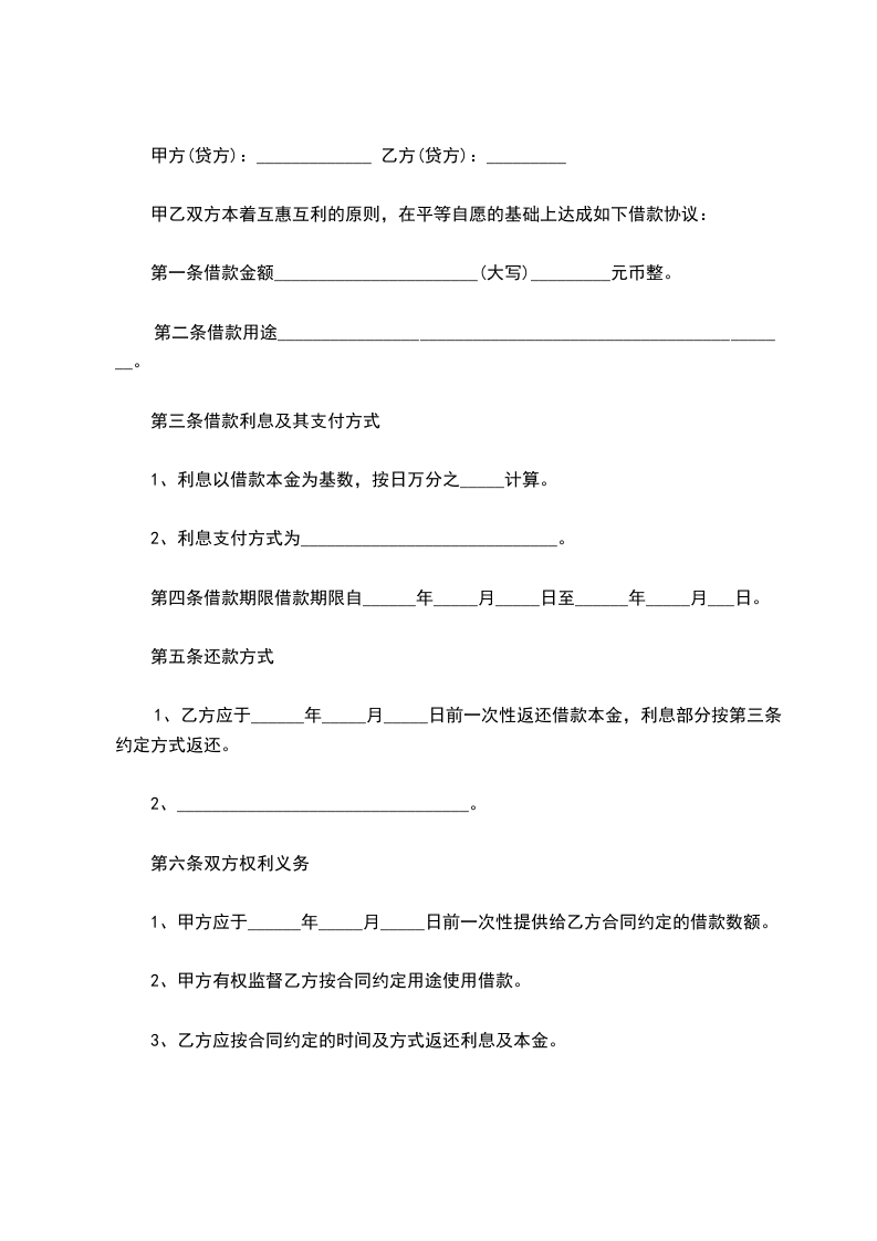乙方贷给甲方人民币(大写)______________, ____年 ____月 ____日前交付甲方。