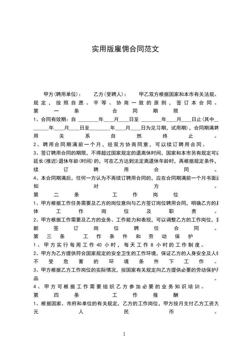甲方(聘用单位): 乙方(受聘人): 甲乙双方根据国家和本市有关法规、规定,按照自愿、平等、协商一致的原则,签订本合同。