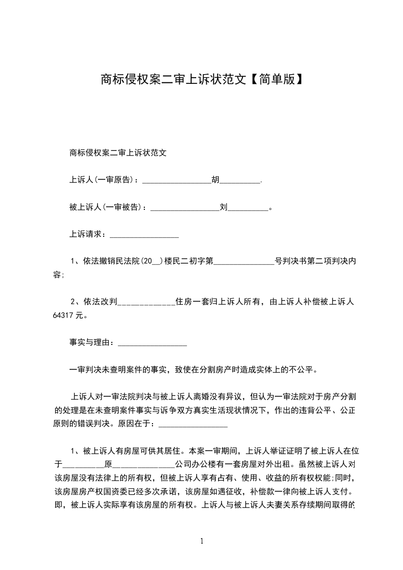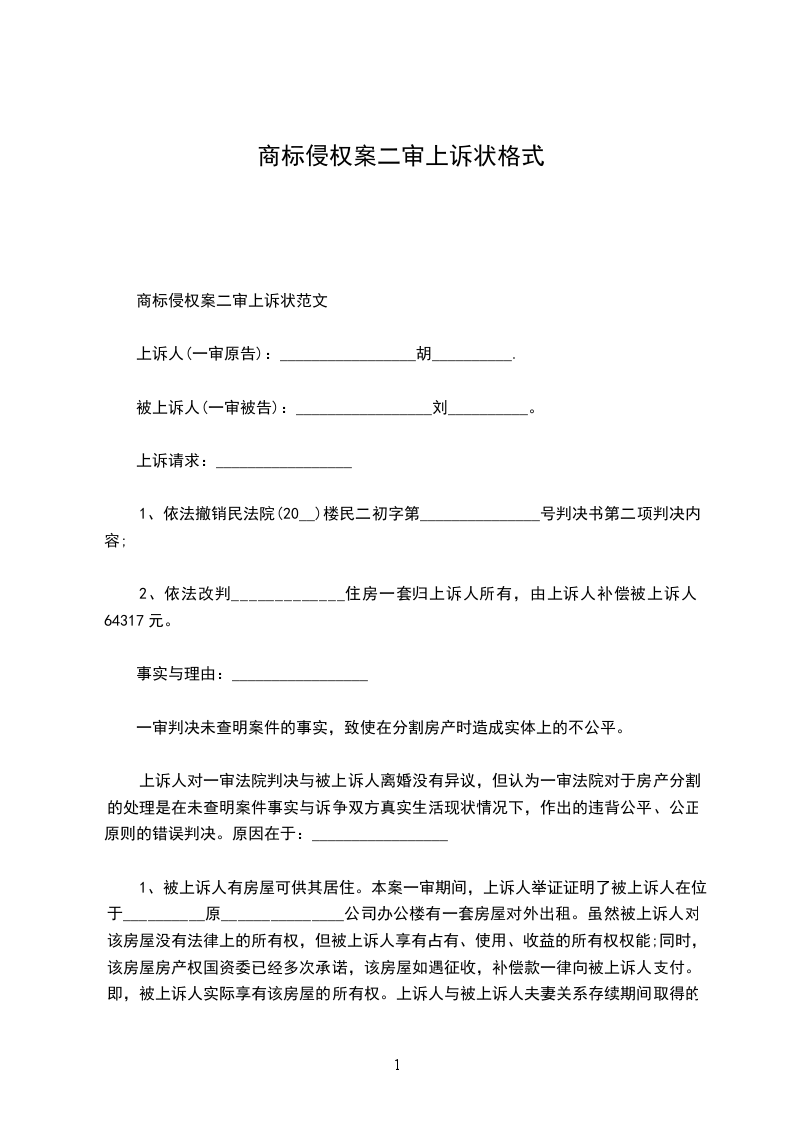 一、乙方接受甲方的委托,指派__________律师为甲方该事务的一审代理人。